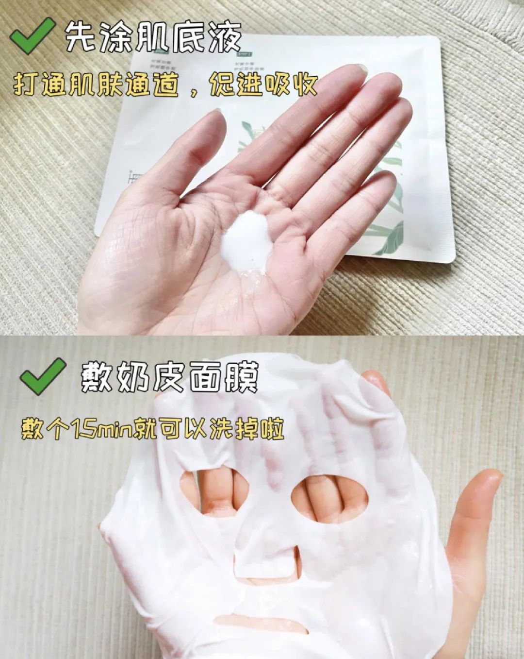 面膜分两步用,先肌底液,后面膜,有