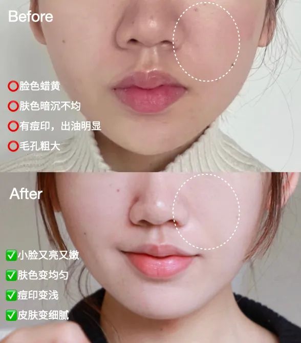 用了一段时间,肌肤肉眼可见的嘭亮透!肤色不均、痘印、毛孔粗大的问题也跑得远远的,效果堪比医美~