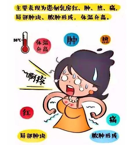 急性乳腺炎是一种乳腺急性、化脓性感染,一般表现为乳房肿胀,按压患处有痛感,表面皮肤红热,伴有发热等症状,情况严重时患处还会容易溃破。