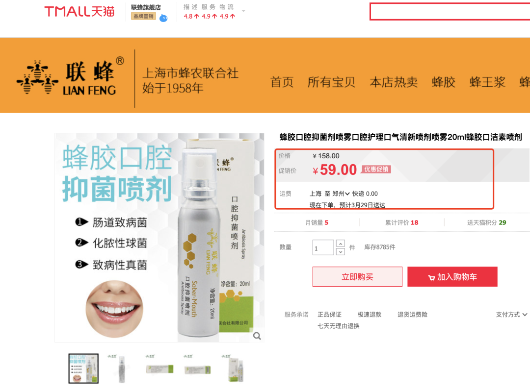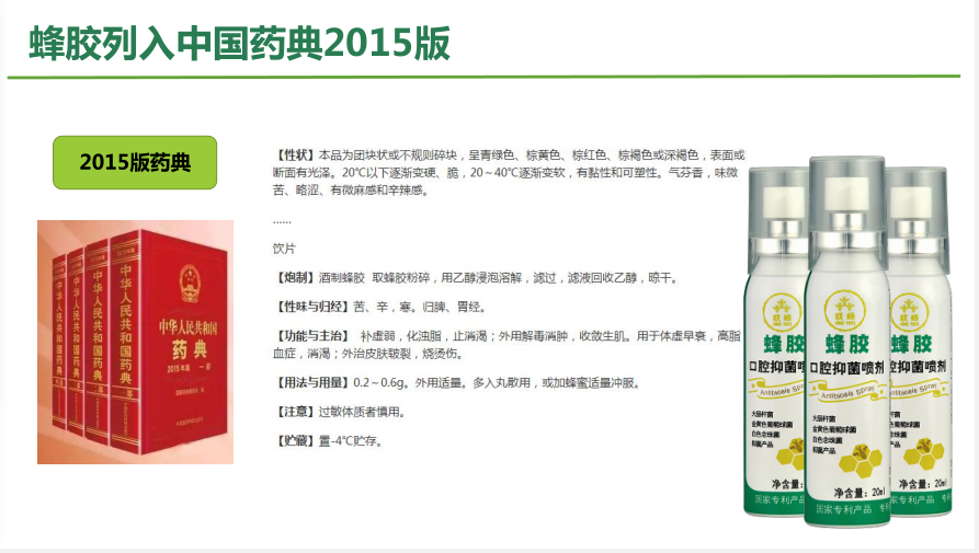 它采用专利成分——巴西绿蜂胶,就连CCTV也推荐报道过,一瓶就含有50亿单位的抑菌蜂胶。