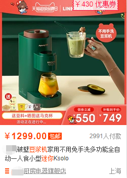 这不,菜菜立马给你们安排我们的爆款豆浆机返团!