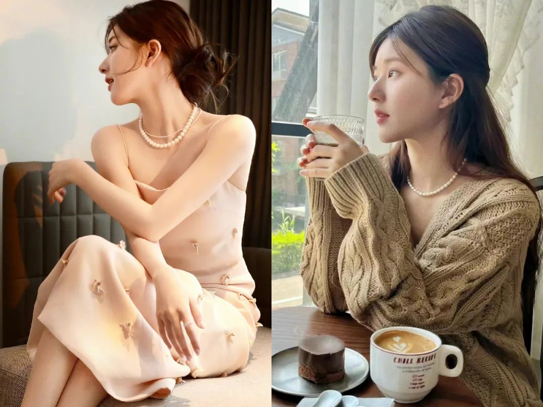 ▲赵露思就很爱珍珠项链,各种尺寸大小的她都买过