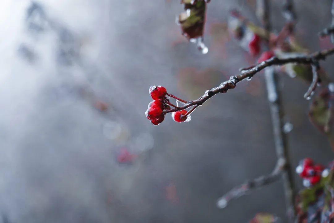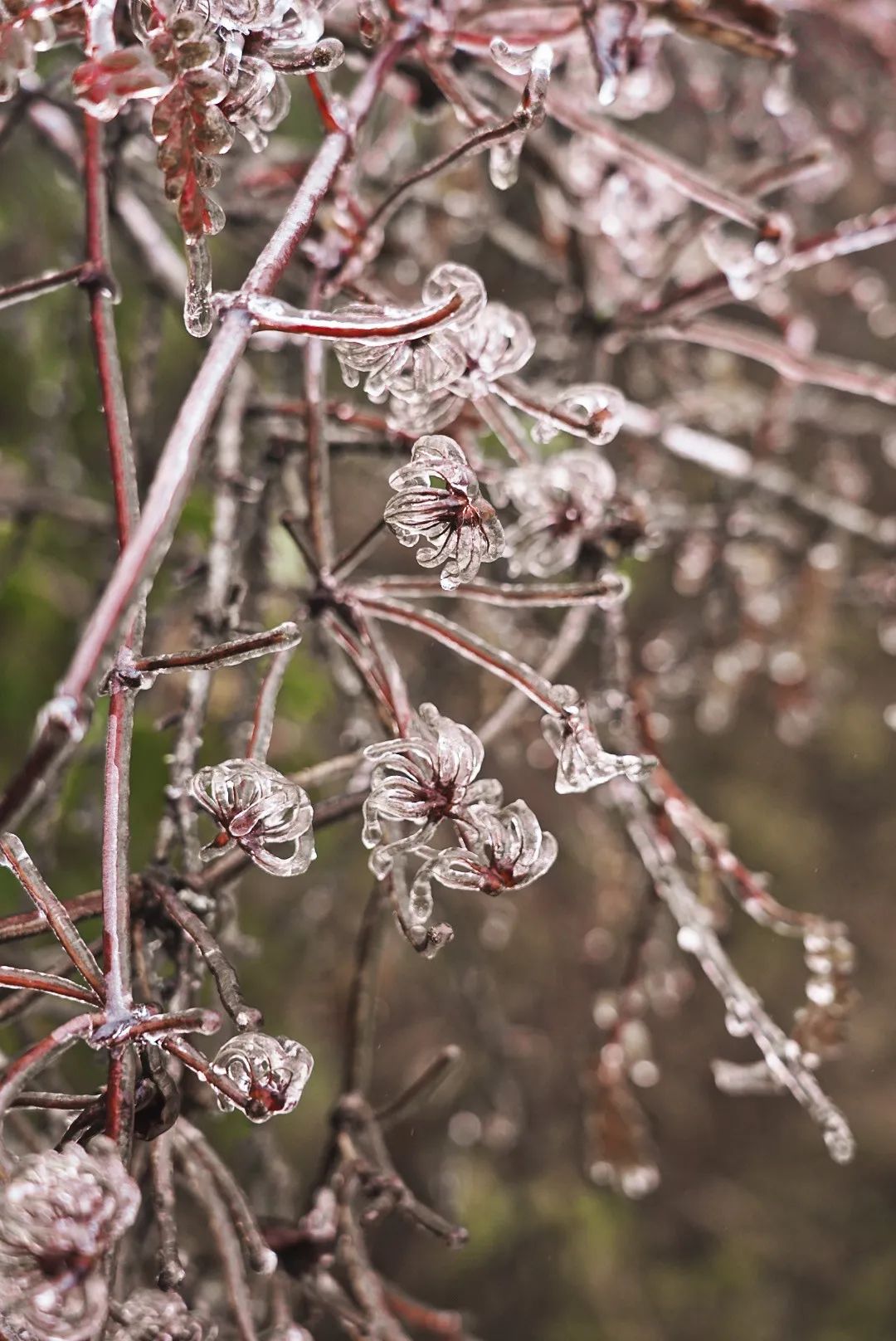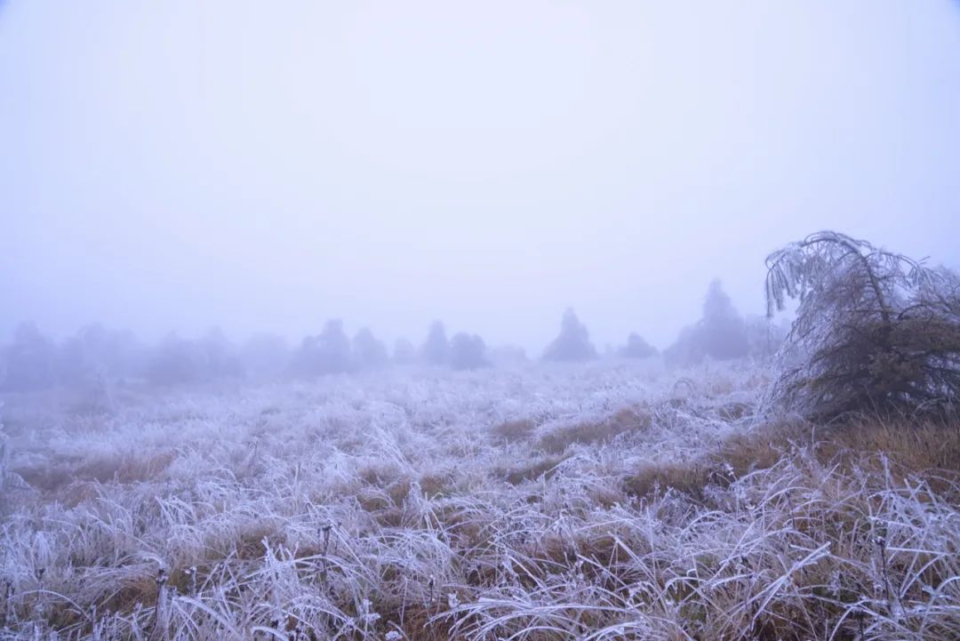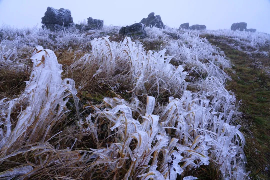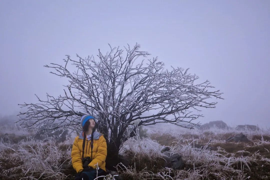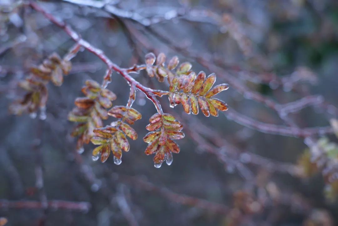 下车的瞬间,感觉到气温骤降,路两旁的植物都裹上了一层晶莹剔透的薄冰,让人无法忽略空气中的寒冷,我迅速掏出手套冷帽厚羽绒,全副武装。