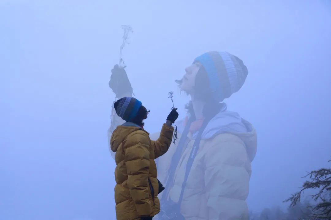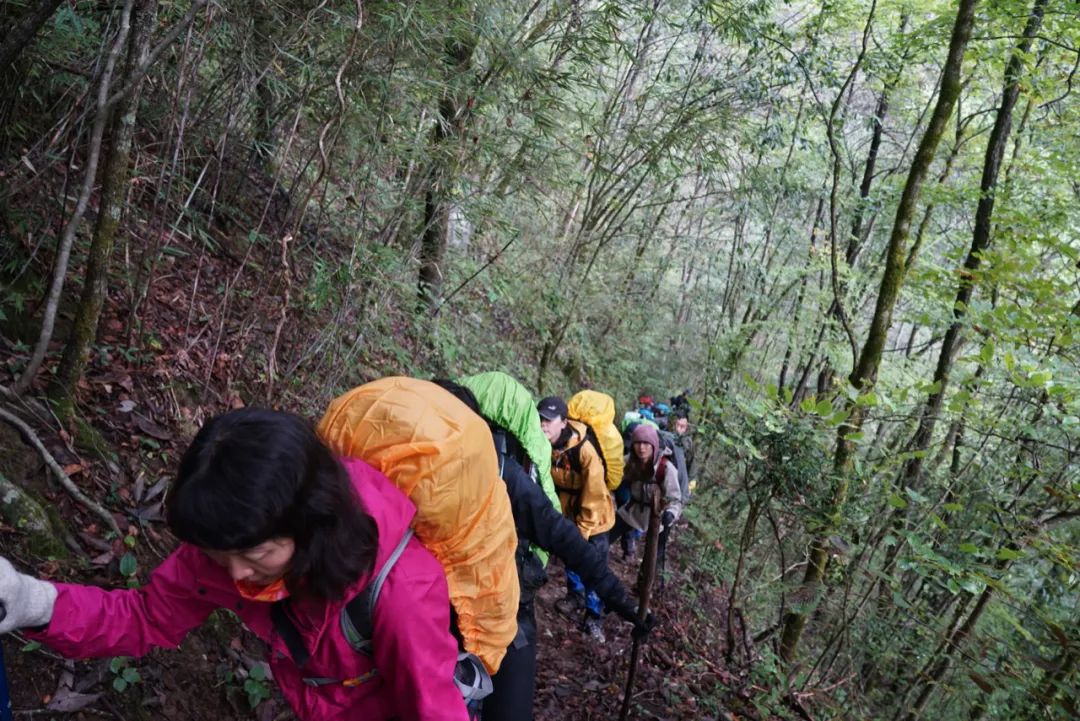 和以往需要催促队员起床不一样,天才蒙蒙亮,大家都开始活动起来了。清晨的话题始终只有一个:“昨夜冷得我彻夜未眠”。队员纷纷开始吐槽我们准备的睡袋如同两张薄布,一点用都没有。可事实是我们是按 -5℃ 的温标来准备睡袋的,完全没想过 10 月的神农架气温会低于 0℃;另外自备 -5℃ 睡袋的三位队员也表示是同样的冷;连常驻在山里的背夫,都说这个季节、这种降温完全是十年不遇,他们自己也没带厚衣服,睡袋比我们的还薄,冻得更惨。