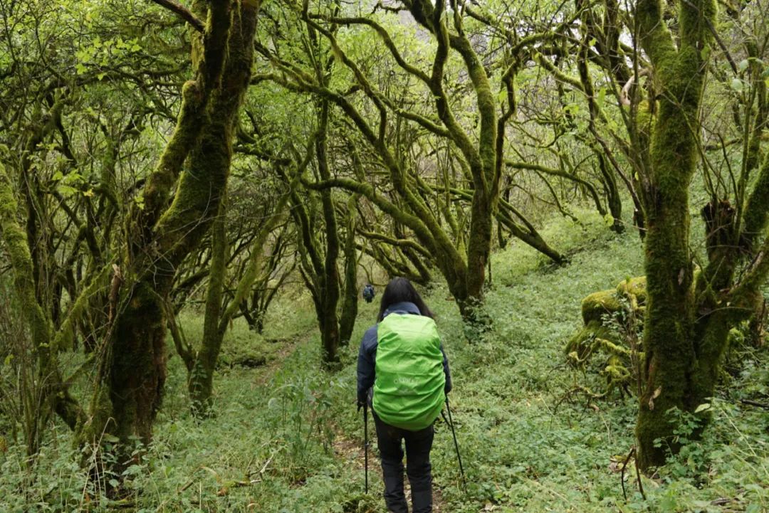 如我预料的一样,有队员提出了想要下撤。好在第二天行程总体来说是往山下走,海拔下降 1000 多米,能够确保不会再这么冷。斟酌一番后,只有一个感冒需要下撤休息的队员,其他都选择继续前进,即使领队坦诚的说接下来的风景不会有昨天的那么好看。