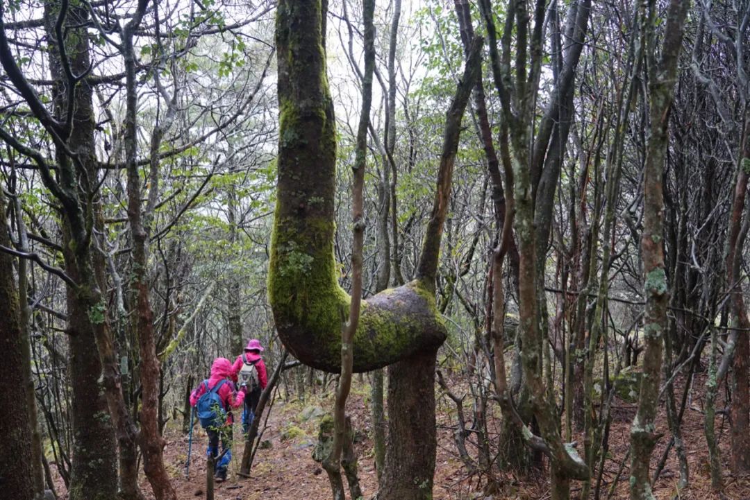 国庆刚回来,办公室的椅子还没坐热,就收到了要再次带队的任务。如此匆忙的行程,手上未完的稿子等着要发,让我有点措手不及,但能出去总是很开心的。出行前,我并没有对本次行程抱有太高的期待。相比华中地区这些俊秀的山川,我还是更爱西部大气磅礴的高山雪域,在高海拔地区行走,也更有挑战性一些。大巴从宜昌出发,绕过无数个 S 弯,在木鱼镇止步,换乘 7 座小车,前往徒步起点。说好的半小时车程,却因为雨天路滑+雾气氤氲,走了快一个小时。沿途看云雾盘绕在山谷间,我想发个朋友圈:“进山修仙”。可抬起手机一看,没信号了。也是,仙境怎么会有信号呢。又可以"逃离人间"数日了,挺开心。