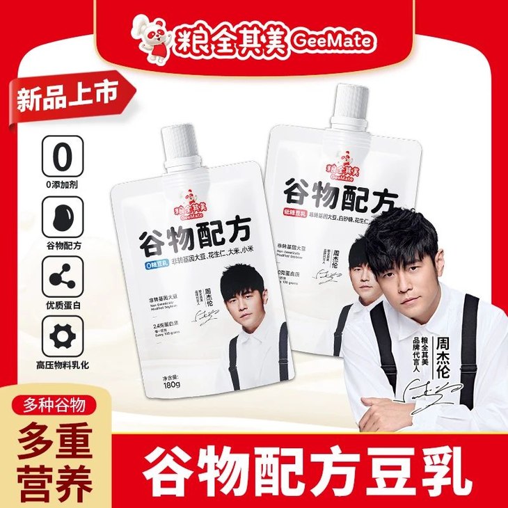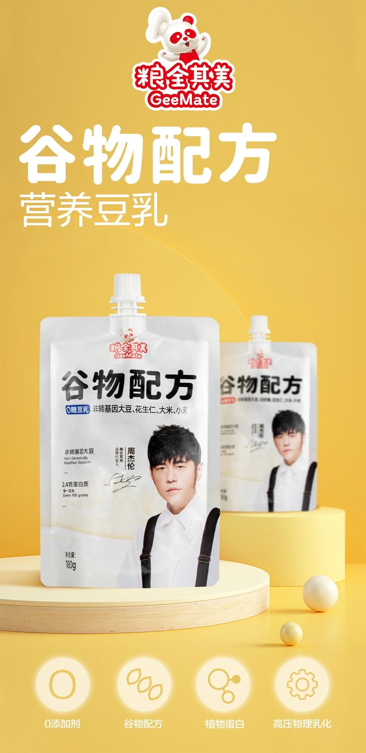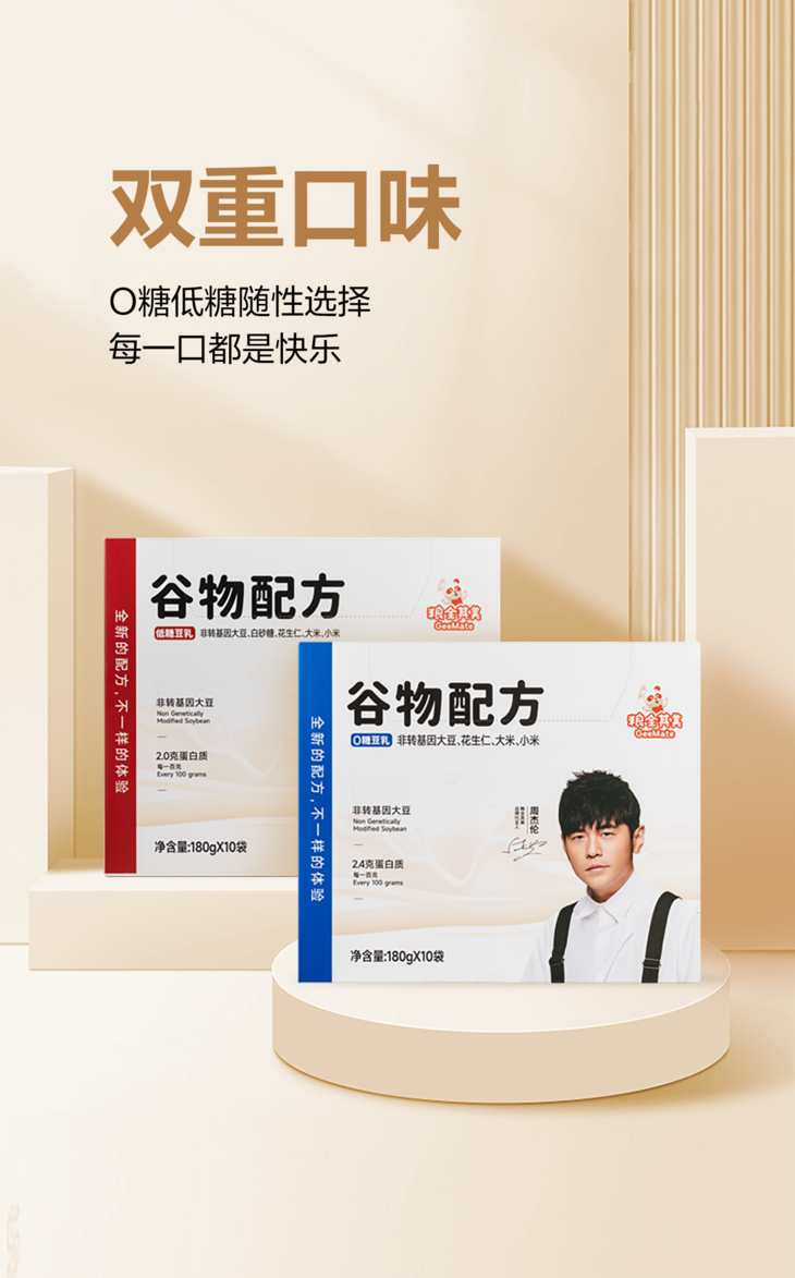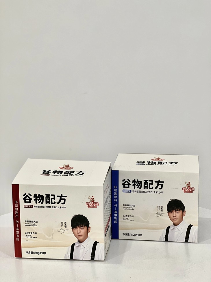 周杰伦代言的这款谷物配方是央视都推荐的国宴豆乳配方哦,谷物搭配营养更全面