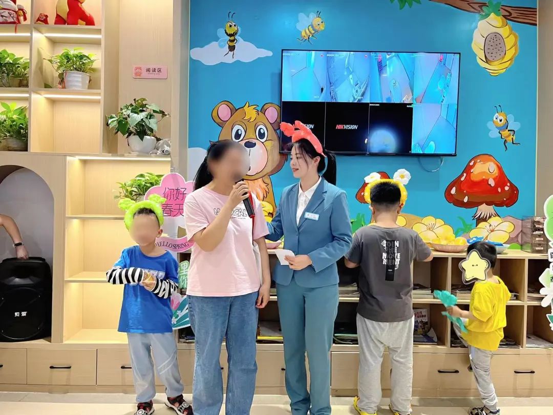 见到艾米熊程校长的时候是早上9点,机构里面已经坐满了大批陪同训练的家长,面前的大显示屏轮番滚动着各个教学室的监控实时画面,没有声音,但能清楚看到小朋友的举动,还有在一旁做引导和记录的老师。“这样不会干预到老师正常的教学,同时也给家长较好的体验感,对中心的专业训练更为放心”程校长说。