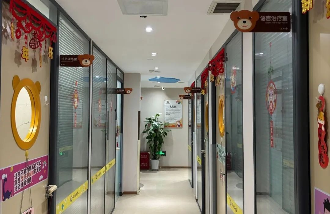 “上午来的小朋友年龄会偏小,大部分是在读幼儿园,要是下午来的话就会看到年龄更大一点的,比如说幼儿园大班、小学这种可以正常入园的。”校长向我们介绍道。由于解决高功能的问题本身比较复杂,目前在艾米熊训练的小朋友都需要分阶段去上课。“上午时段有70%左右的小朋友是可以说话和交流的,只是社交沟通没那么好,可能在交流过程中就自顾自娱或者不能深入对话,只能做到问答或者自我需求表达。下午的孩子有一定的语言能力和智力水平,这类儿童主要解决的是社交沟通技巧和心智解读技能的问题。”校长坦言,孩子们在临床的行为表现是多变的,3岁会有3岁的脾气,7岁会有7岁的认知。在能力提升的成长过程中,如何自然地让孩子的行为过渡到正常发育阶段,对康复师的考验难度将直线上升。目前国际上公认的孤独症谱系障碍儿童康复的方式是以教育行为训练为核心,整合运用心理、医学手段,尽可能促进儿童的社会性发展,更好地走向社会。“我们虽然是干预机构,不像医院可以下诊断做检查,但艾米熊坚持的核心价值观是以专业的干预训练促进儿童健康发展。”为此艾米熊组建了一批具有多学科背景的权威专家团队来解决教育康复的问题,首先是康复体系的搭建,艾米熊的康复体系是在国内多学科背景的权威专家团队指导下,结合多年的临床孤独症康复实践构建的科学的、富有成效的课程体系。根据孤独症及其他相关发育障碍儿童特点,坚持个性化干预原则去做干预方案,呈现方式通过一系列的定制化课程,包含社交训练、认知训练、语言训练、音乐、游戏、心智解读技能、社会技能、语用技能、感觉统合及运动、整合训练等多种形式。在总课程技术体系支撑下,再根据学员的动态发展特点变化提供个性化、全过程管理和服务方案,进而提高了方案的精准性及孩子的干预成效。此外,艾米熊的康复训练不止是局限在训练中心来完成,艾米熊采用的是机构中心与家庭联动康复的模式,中心负责孩子的康复评估、干预和训练,并给家长提供同步化的家庭康复方案,让家长能在专业康复师的指导下,在家庭环境中实施康复训练。这样一来,家长在孩子康复训练中的疑惑能得到解答,孩子学会的技能也能在家庭环境中潜移默化的泛化训练效果。凭借差异化、专业化的康复模式,艾米熊成功吸引到了全国各地有康复需求的家庭。“第一年就提供了43200人次的专业康复训练,其中非重庆本地的孩子占比达到6成,许多是从朋友和互联网家长分享上接触到的。