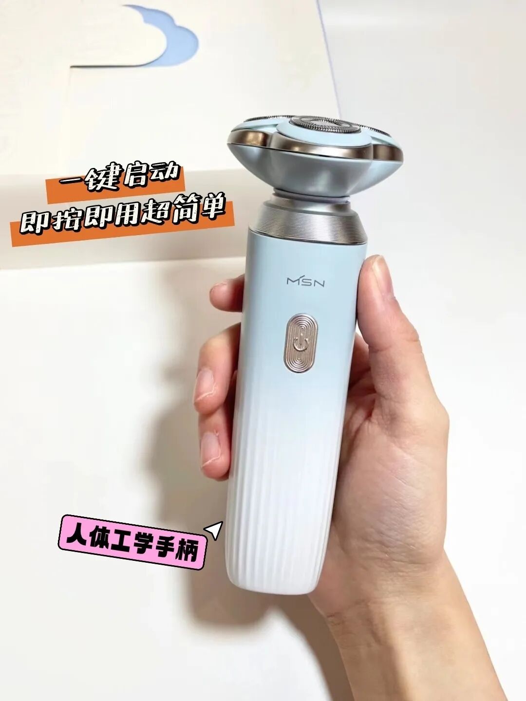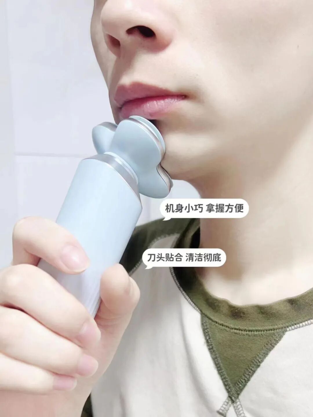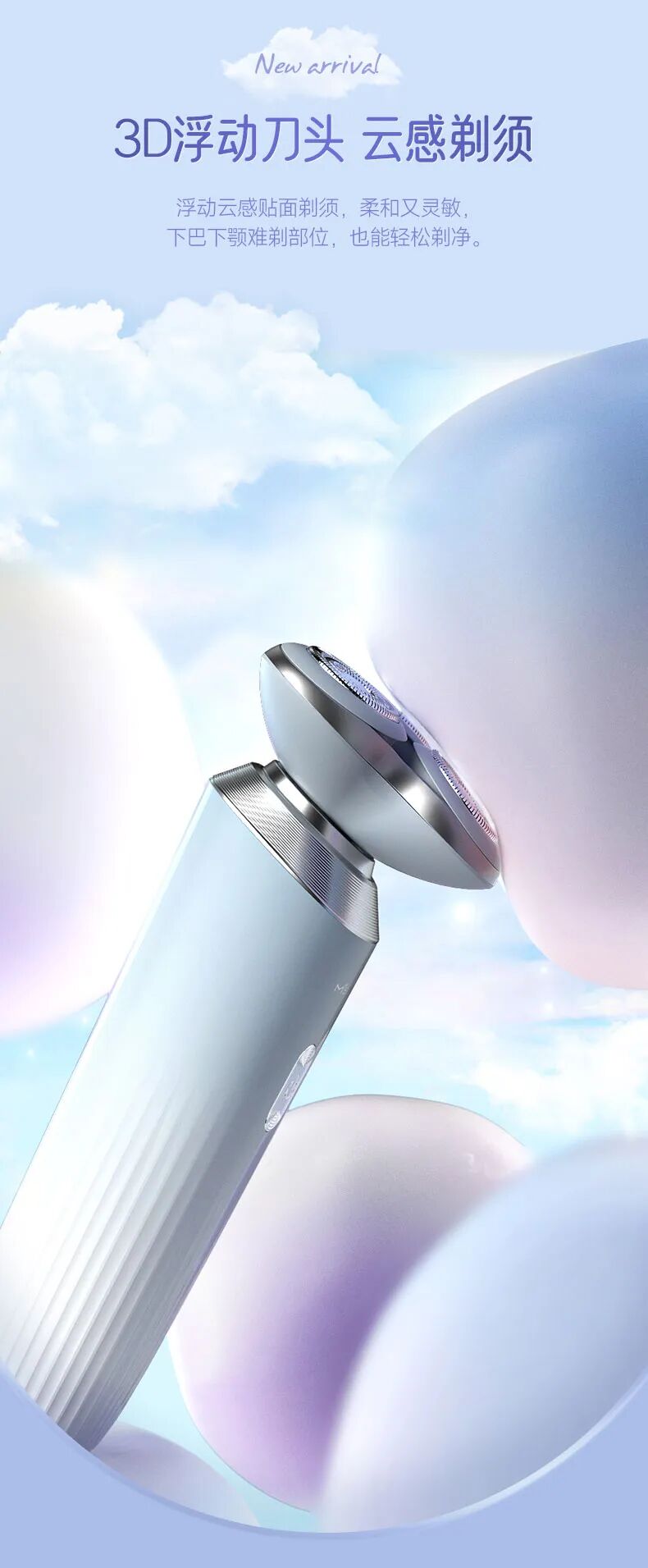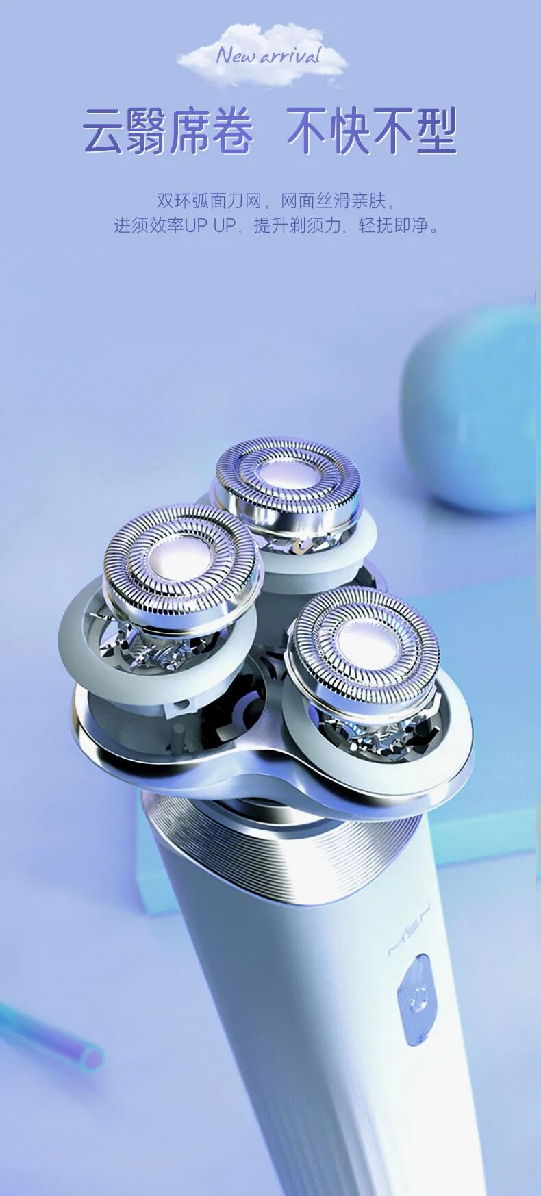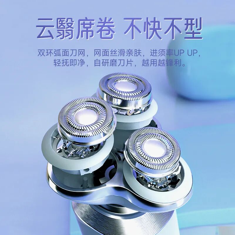 3个悬浮刀头,剃须的时候会随着面部的结构自动贴合,确保可以剃净每一根胡茬。