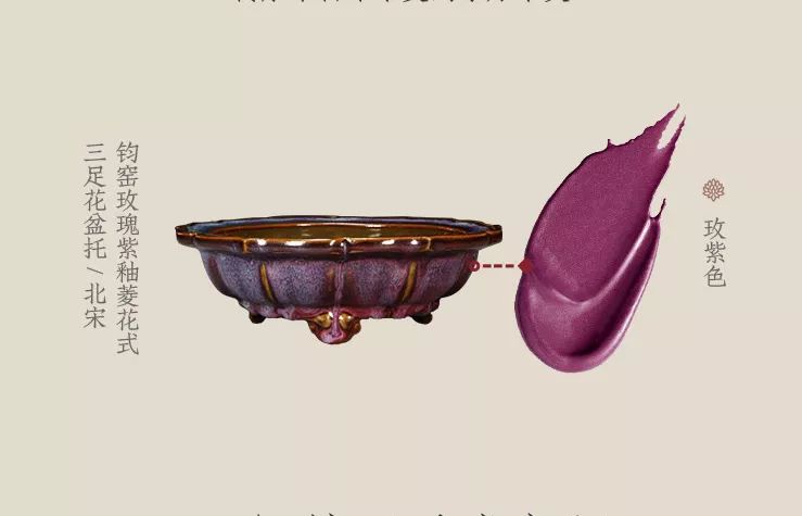 六宫真正女主人的霸气全开,取色自北宋钧窑玫瑰紫釉菱花式三足花盆托,冷艳高贵,沉着机敏,历经时光沉淀,运筹帷幄,自信而美。