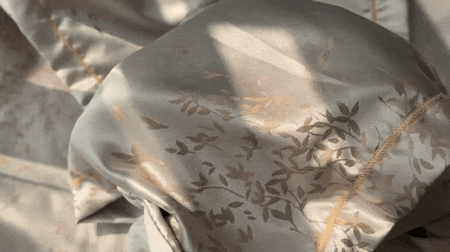 笙观相沐金枝玉叶天丝四件套采用高支高密色织提花面料,在织造前先将纱线染色,再精心提花。这样做出来的床单避免了水洗多次引起的褪色、起球等缺点。