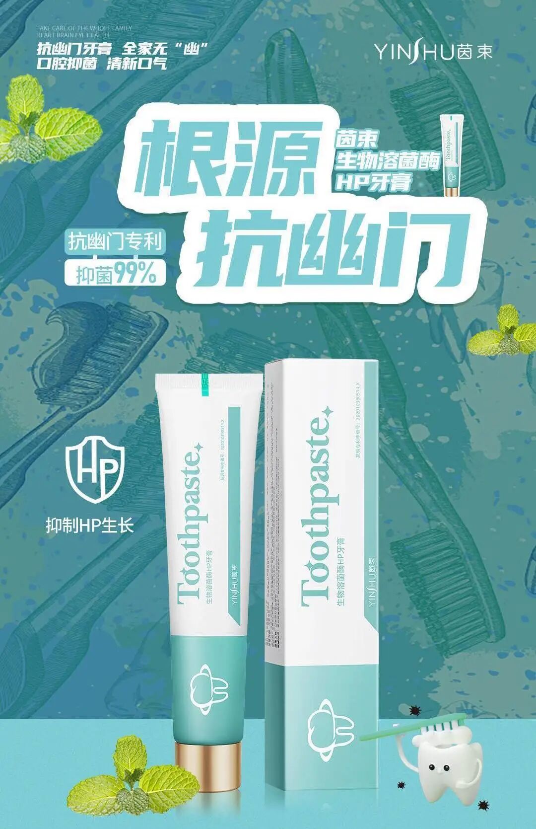 而茵束这款牙膏含的是能够抗幽的草本成分,从根源抑制幽门螺杆菌。