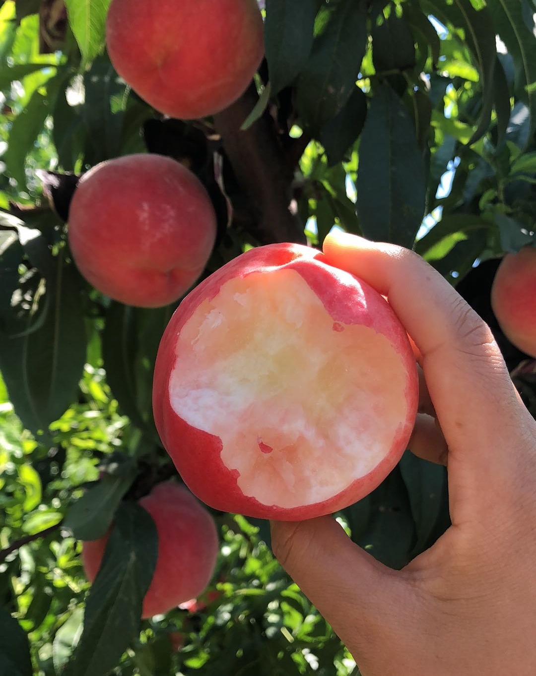 咬上一口,馥郁的桃香瞬时环绕整个口腔,接着就被倾泻而出的桃汁浸润了,桃汁混合细腻的果肉,一齐滑入喉咙。