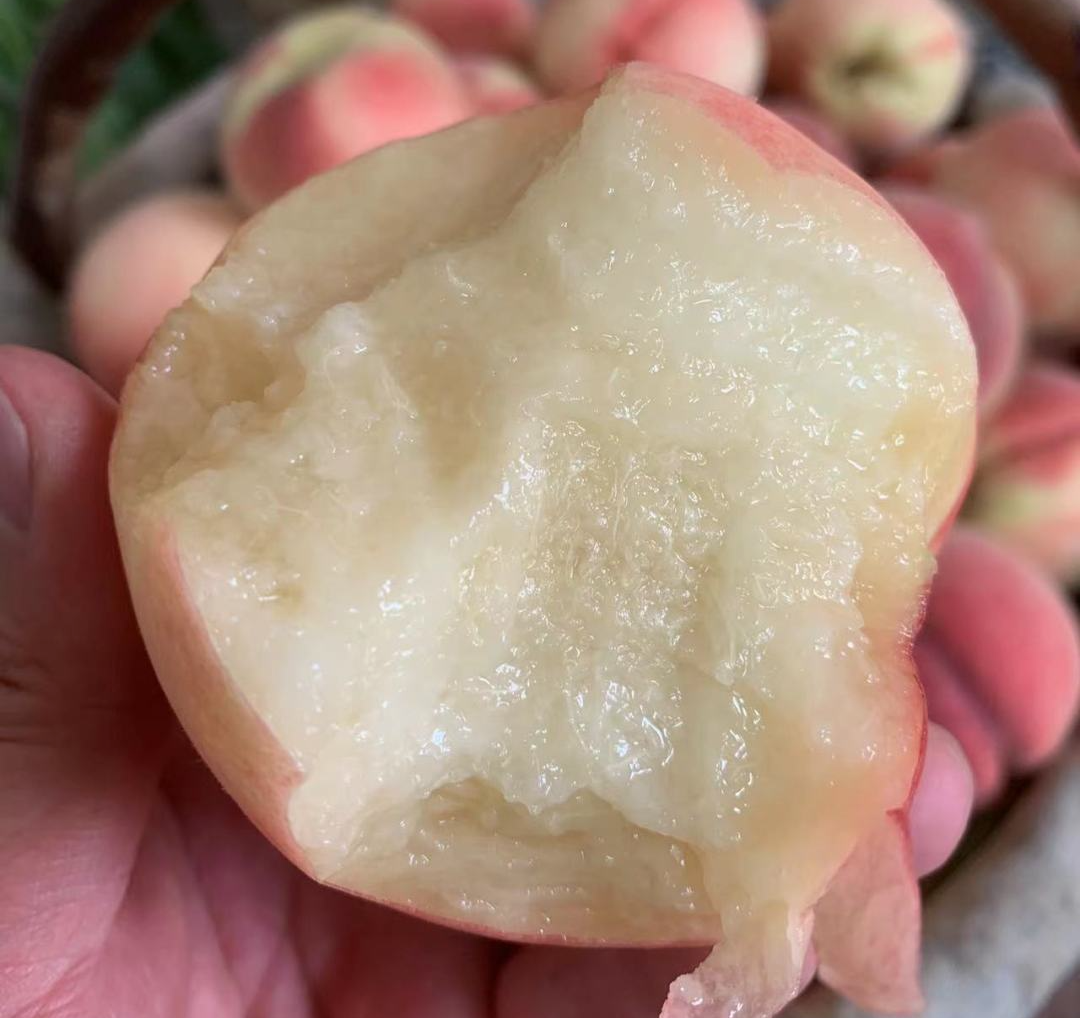 “仙翁玉面有绝招,人赠芳名水蜜桃。”刚收到的时候,可能吃起来是甜脆的口感,放两天再吃,就是软糯爆汁的那种,汁水特别足!