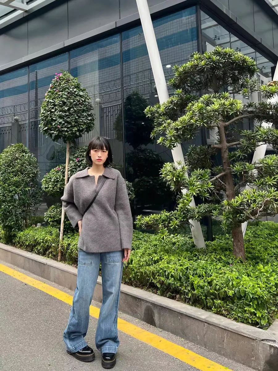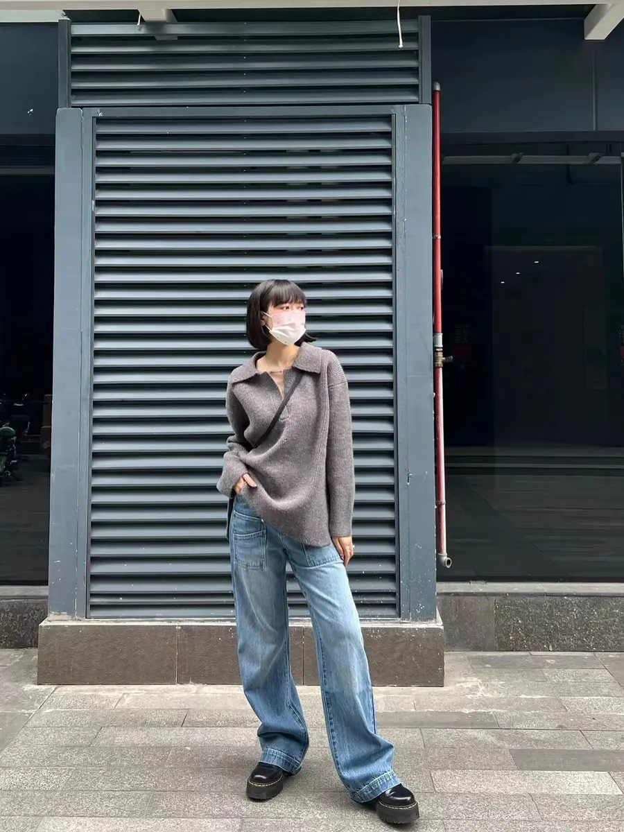 polo领毛衣+多口袋牛仔裤