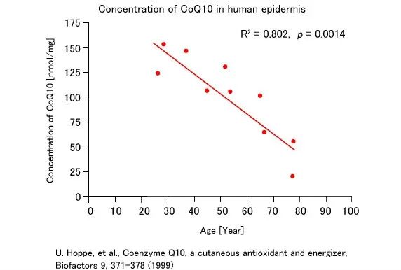 根据科学家们的研究,辅酶Q10在年轻人皮肤内的含量还是很高的,但到了五六十岁,大概只剩一半了。我们都说抗氧化要从20岁做起,可不止是补充维C维E,这一整套包括辅酶Q10,都得给我补起来啊!