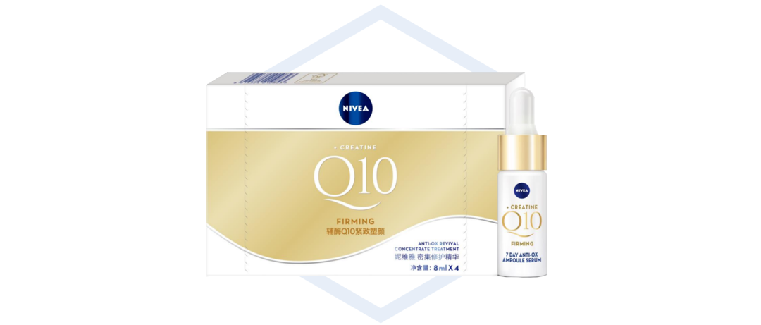 到了今年,拜尔斯道夫集团又推出了它们新一代的辅酶Q10产品——妮维雅锁鲜小Q瓶(妮维雅辅酶Q10紧致塑颜密集修护精华) ,联合辅酶Q10与另一个经典抗老成分肌酸,把它的抗老紧致效果又提上了一个水平,果然严谨的德国人这几年一直没放松对Q10的研究啊。