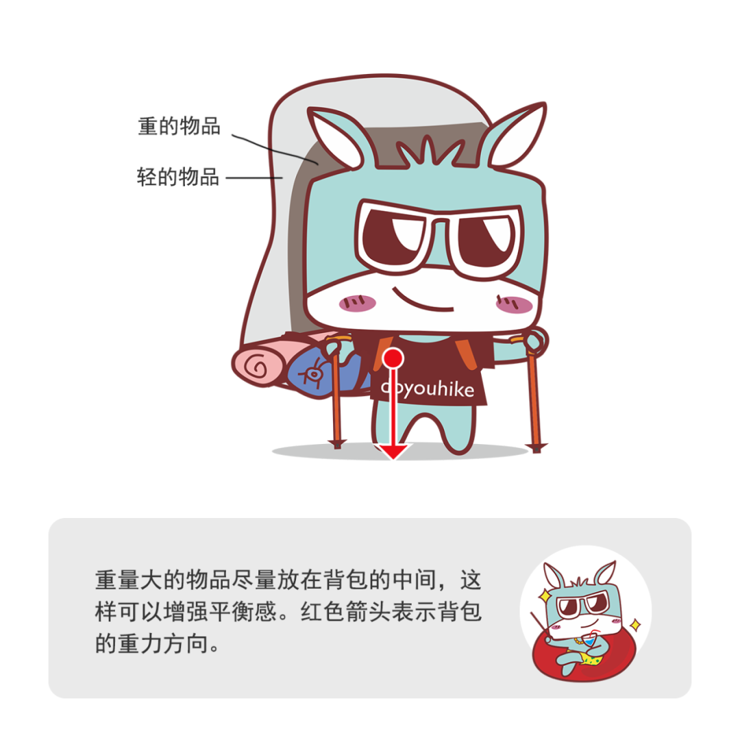 在行进过程中要达到全身与背包之间的受力均匀,背包在身上固定稳当,需要注意的有很多。随着历史长河的发展,“前人”针对物品放置总结了几个要点:上重下轻,里重外轻,左右均衡,常用装备在顶部,不常用装备置于底。