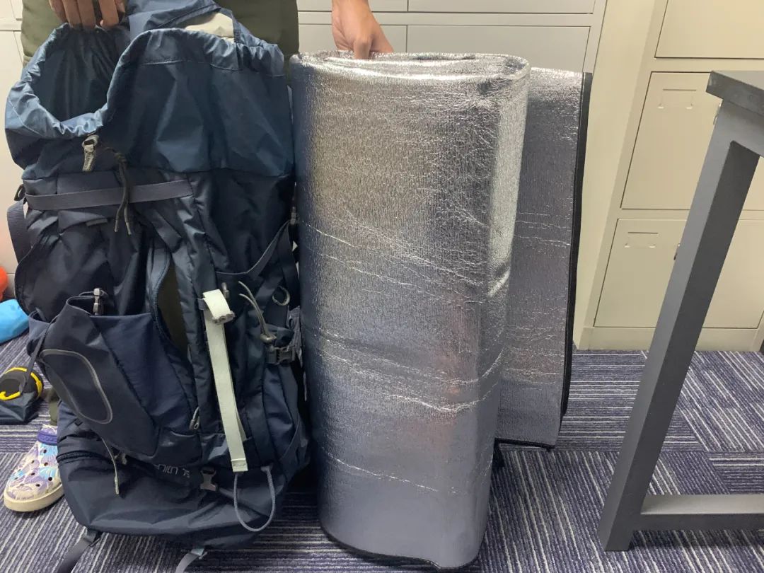 一般情况下我们都会选择让蛋巢防潮垫外挂在背包近底外部,主要还是因为它太占空间而重量较轻,包内放下它就不用考虑其他物品了。