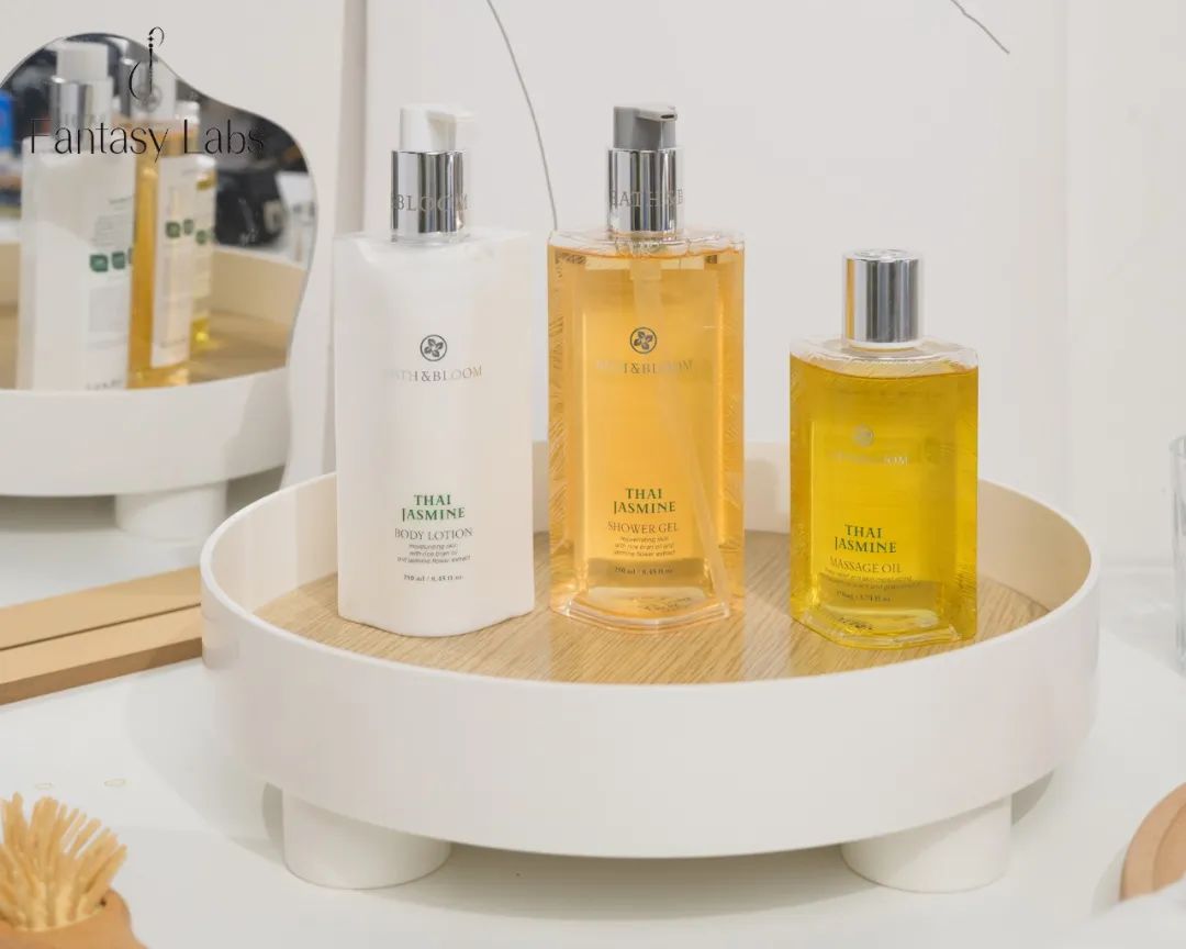 都很茉莉,但细闻又像不同形态的茉莉:按摩油是一壶浓浓的香片;身体乳更像是刚摘下来的茉莉花,伴着枝枝叶叶,好鲜、好灵。