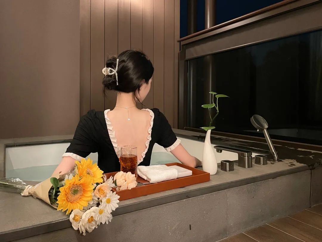 我们昨天去清远团建,特意带了身体油去泡私汤,美滋滋!