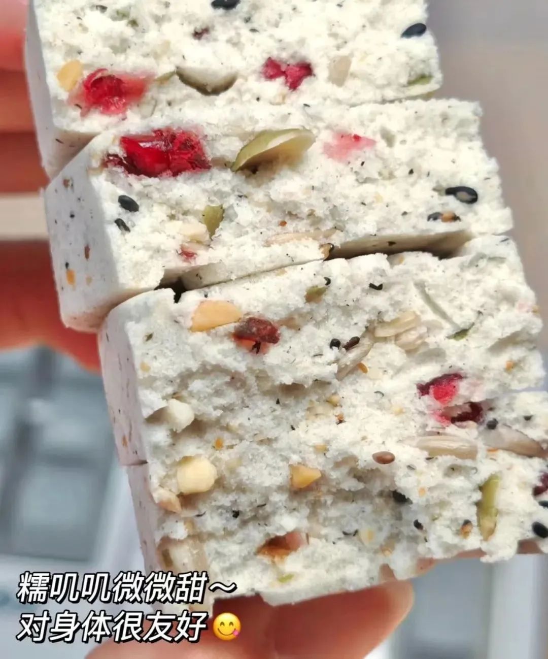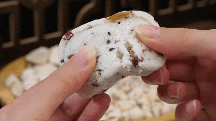 刚出炉的八珍糕,混合着米香与各种果仁香,清新而不腻,没有其他高糖油点心的油腻感。