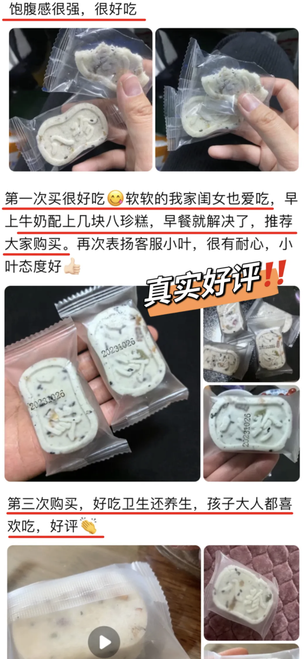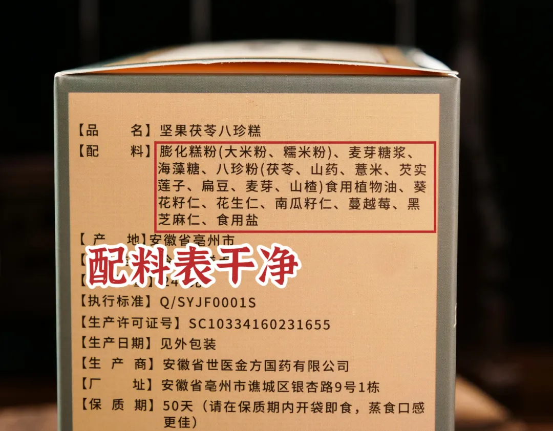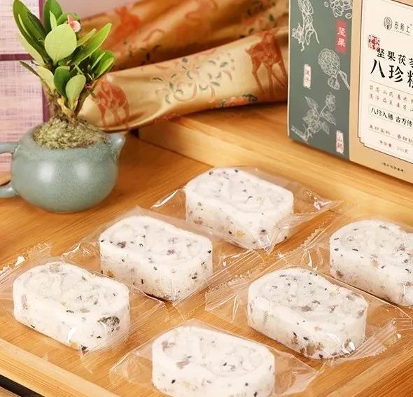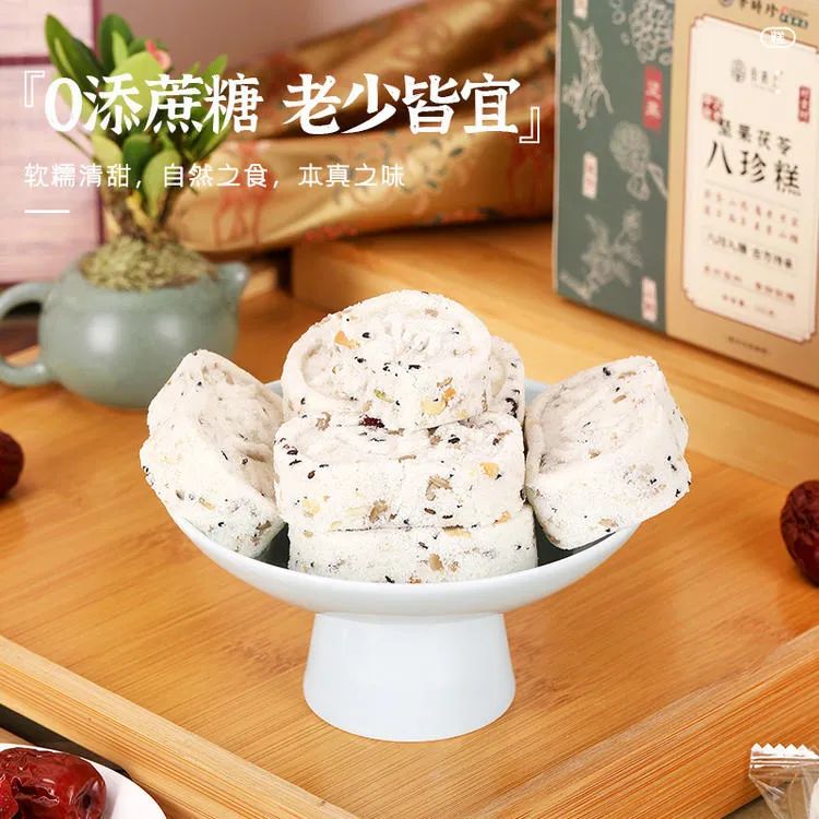 茯苓山药八珍糕独立小包装,干净卫生。平时出门也能放包里,饿了吃一块,让人停不下来。每一块都是新鲜制作,没有添加香精、防腐剂,所以保质期较短,只有50天,建议收到后尽快食用。✓清明后就是谷雨、立夏,湿气重,建议你备个1~2盒,当早餐、下午茶、宵夜皆可,轻调慢养。✓家里小孩、老人没食欲吃饭不香的,也建议常备着,养好脾胃,才能吃嘛嘛香,身体棒。✓上班族早上出门急急忙忙,也建议备个3盒,当个早餐快手又营养。吃的辛辣油腻,脾胃负担重,大肚腩越来越肥。八珍糕传统脾胃方,给肠胃减负担!同事小丽现在每天当早饭吃,也不腹胀反酸了,早上起来不水肿,整个人轻盈多了!还有好多吃过的粉丝也都纷纷给出好评,口碑实在是好↓茯苓山药八珍糕一盒有240g,每盒有10块左右(以克重为准)。每一块都是独立小包装,干净卫生,每天1块可以吃上一周!每一块都是新鲜制作,没有添加防腐剂,所以保质期较短,只有50天,建议收到后尽快食用。