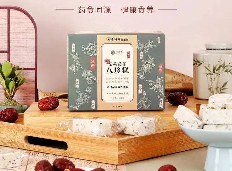 这款八珍糕来自于李时珍中医研究所,他们秉承“传承药圣李时珍,深耕中医养生”的理念。对《本草纲目》等古籍多年研究,用心研制适合国人的糕点。据《上用有参底薄》记录,清朝乾隆「每日随着熬茶时送八珍糕」,这一吃就是很多年,足见对八珍糕的喜爱。为什么这么多古方中,八珍糕占鳌头?看看这个方子有多讲究就知道了: