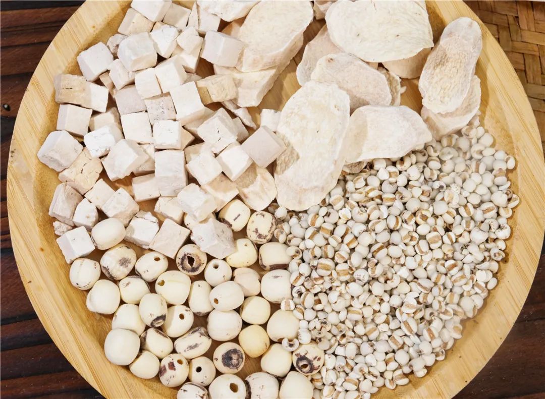 茯苓《伤寒明理论》记载:"渗水缓脾",利水渗湿,调脾胃更强;茯苓在降水的同时,使得脾气向上升;薏米利湿,药性是向下走的。这样一升一降,使得人体内的圆运动转起来,有升有降,才能很好地运化掉体内的湿浊。