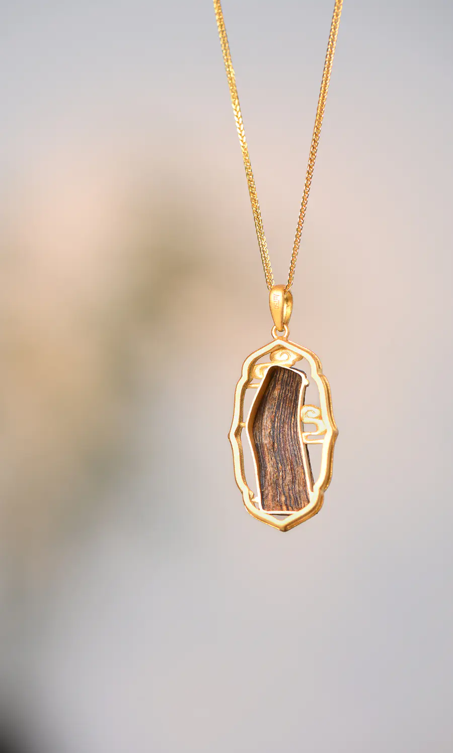 吉祥丨天然芽庄白奇楠包金吊坠 沉水级 SP10542