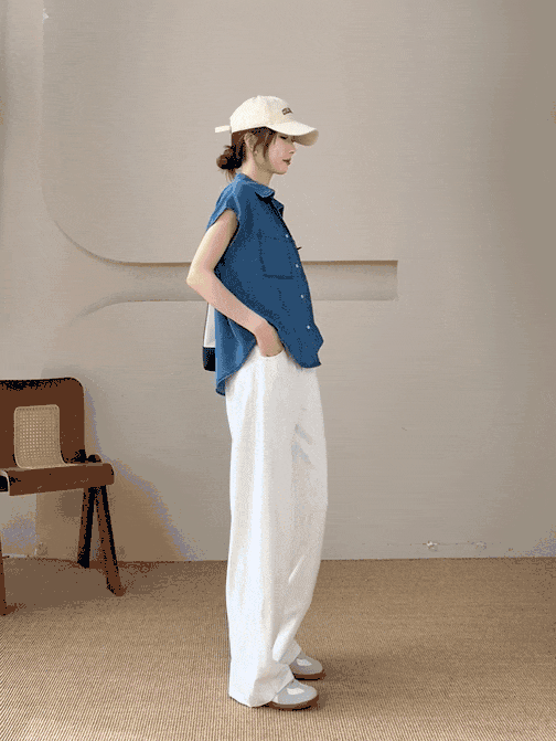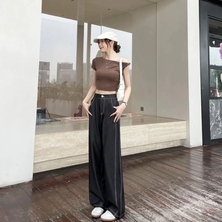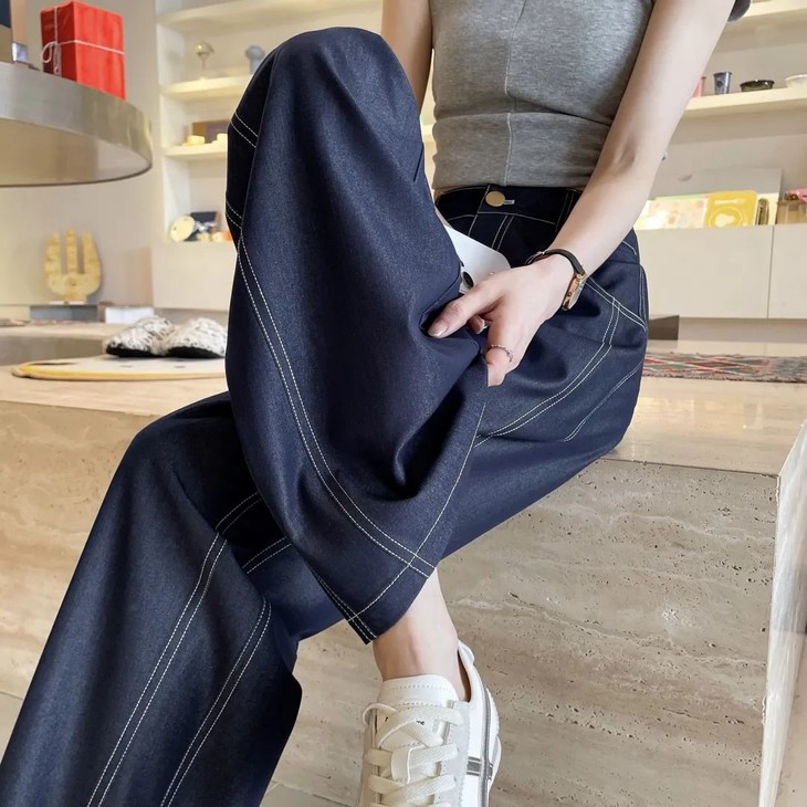 宽松有度的裤腿,把大腿和臀部的肉都隐藏住,上身后腿部线条显得又长又直。