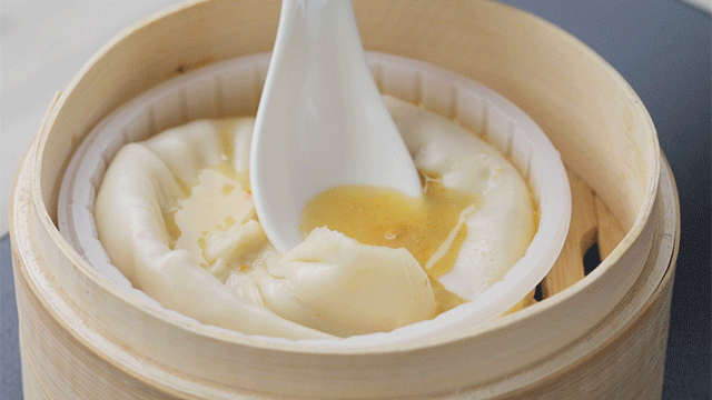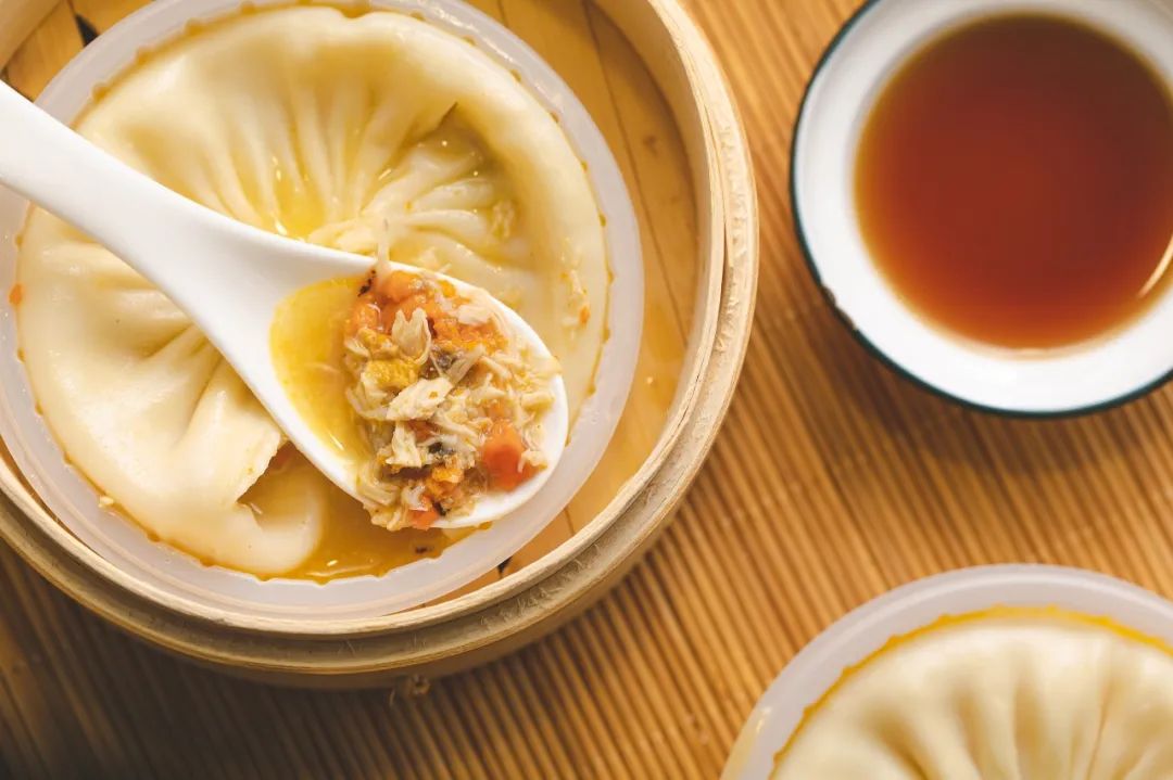 裹馅时皮冻类似果冻的质地让蟹肉、蟹黄都能裹进面皮。生汤包上屉后皮冻遇热便化作了鲜味浓厚的汤汁。