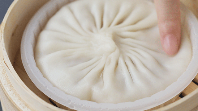 汤汁充足,蒸熟后才能使汤包鼓起,出现手指轻戳便晃晃悠悠的场景。