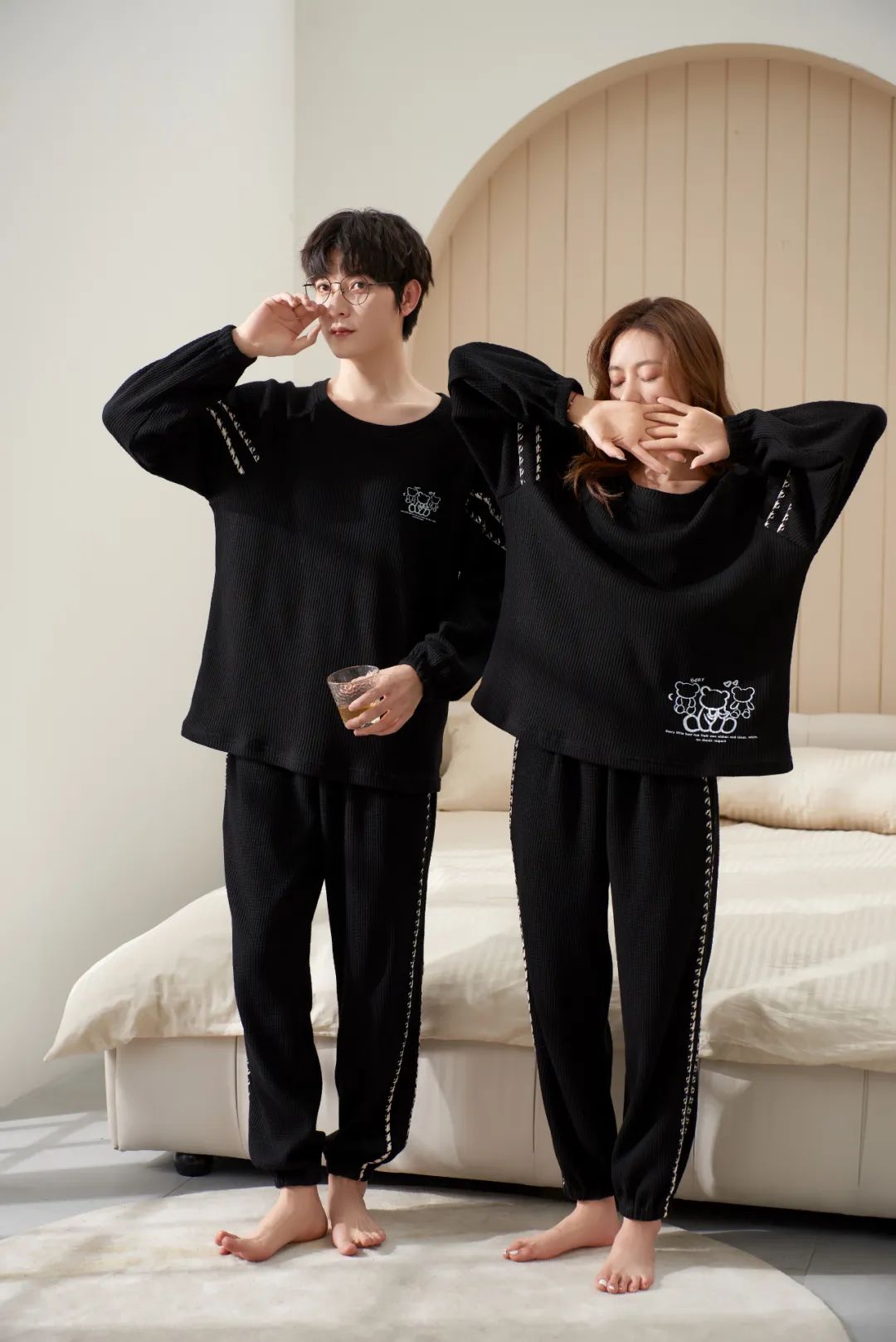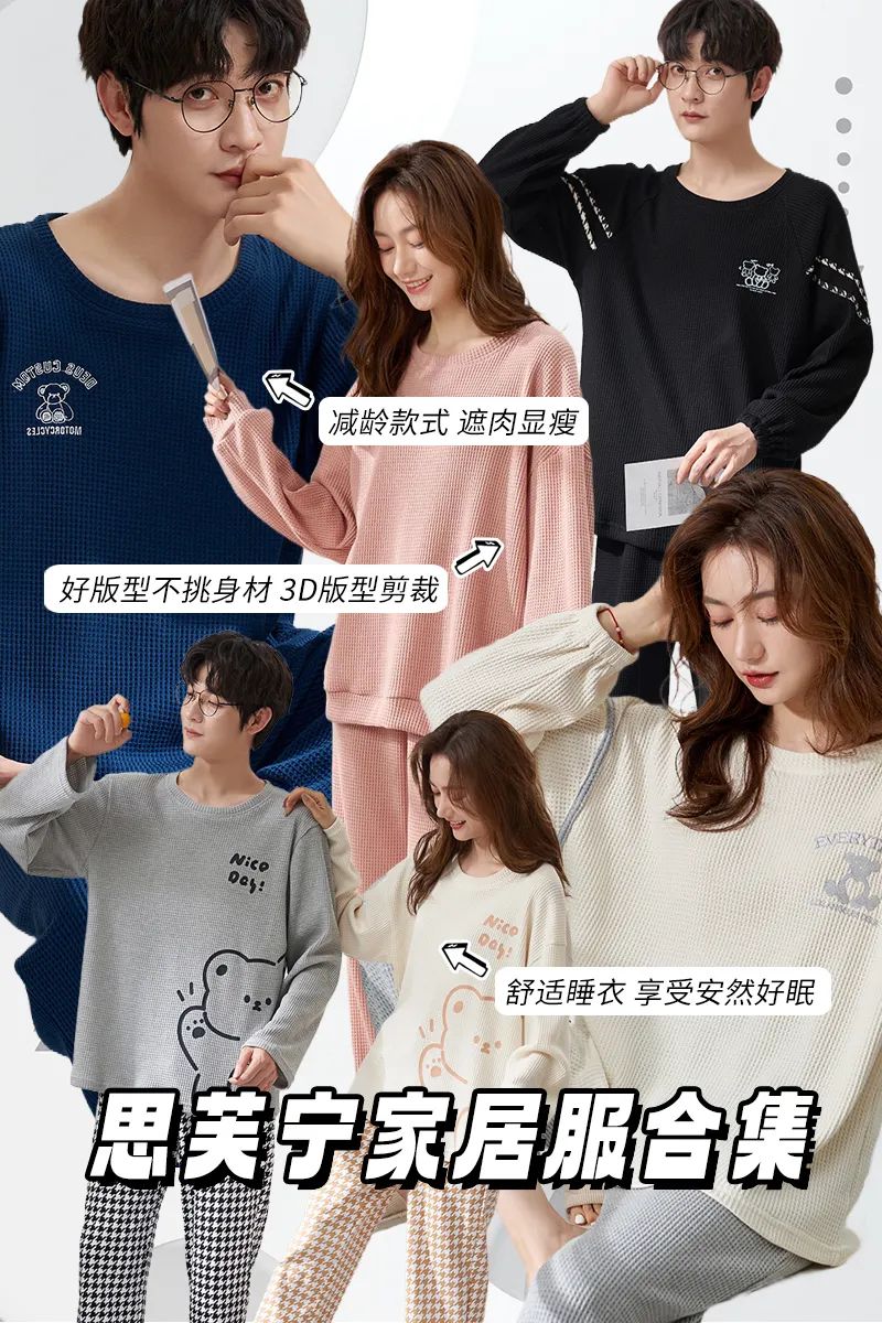 59.9元/套!可外穿的秋日情侣家居服,华夫格面料,舒适有型!