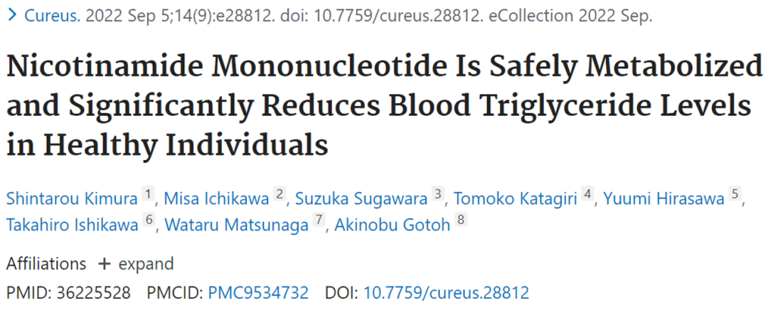 静脉输注NMN后甘油三酯水平下降