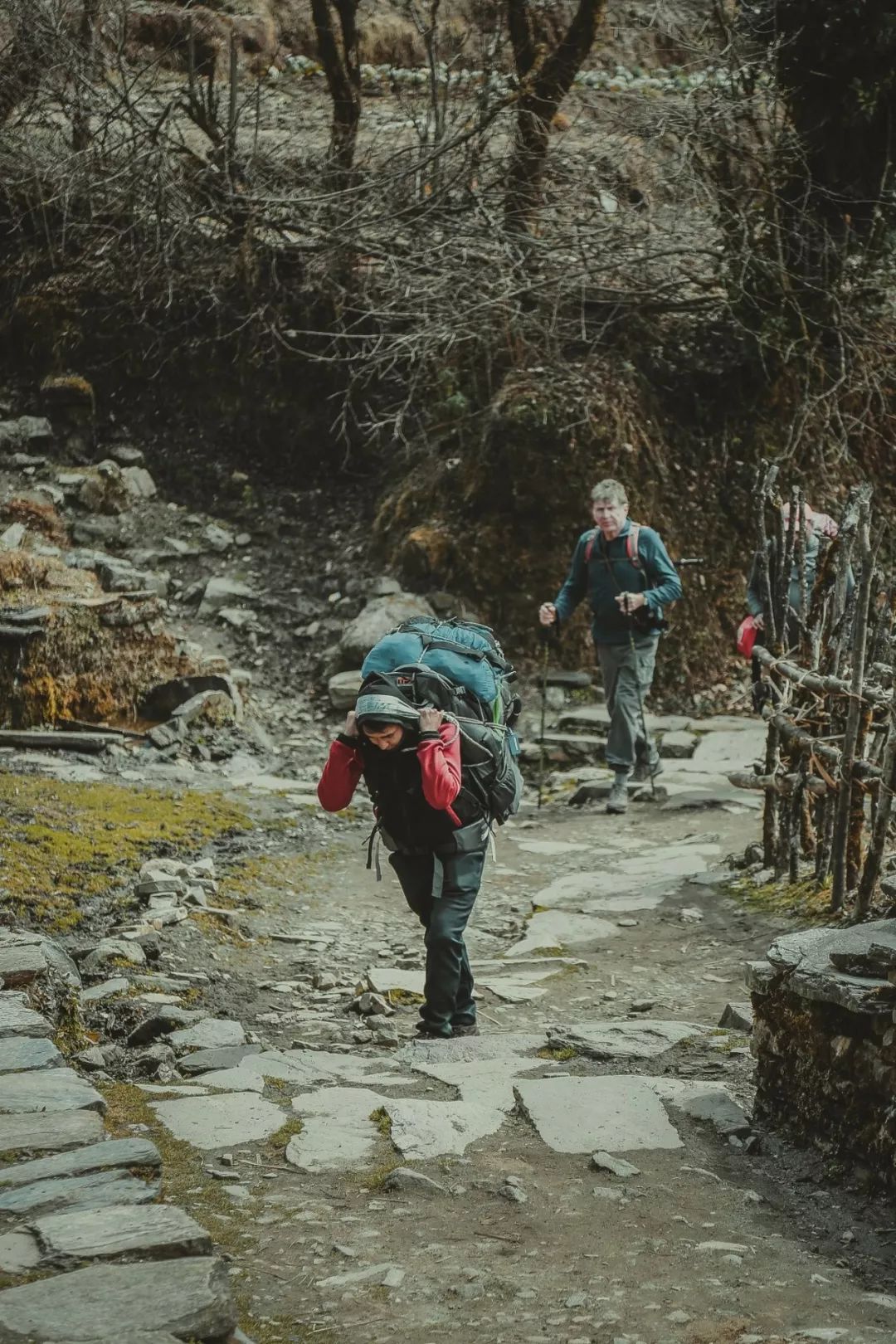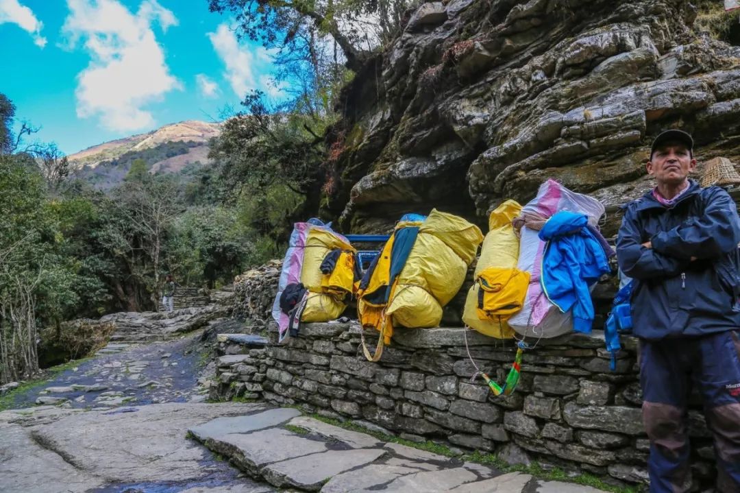 在徒步过程中你可以看到一路会有很多背夫与我们擦肩而过,他们都是最普通的尼泊尔老百姓,基本上都没有上过学,当然也可以理解是贫困人家的孩子,从 17 岁到 40 多岁,什么年龄的都有。