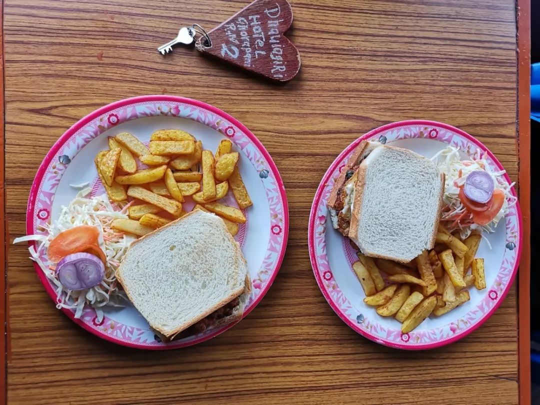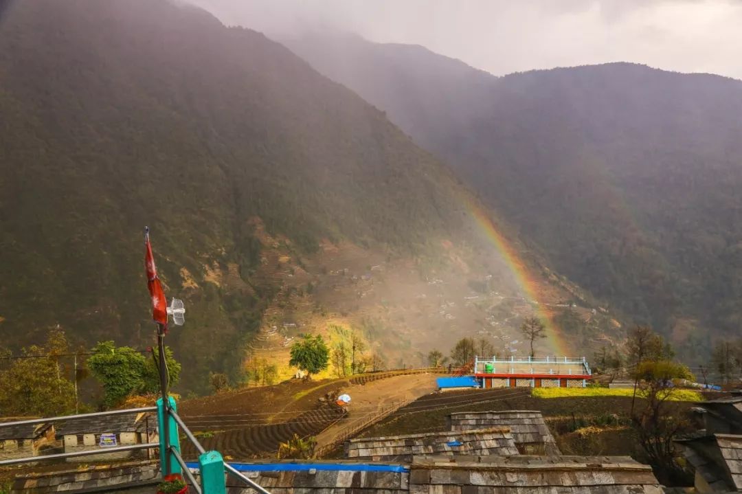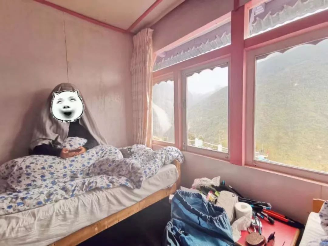 从冰冷的客栈起来后,浑身冷到不敢出被窝,我告诉自己,我可是个东北人啊,太丢面了,你让南方人怎么看,你让尼泊尔人怎么看... 说是迟那是快,抓个裤子麻溜的就穿了起来,在室内裹着冲锋衣,不过依然很冷,甚至可以吐哈气,不过这时注意到,唉?窗外的天气好像很好嘛!