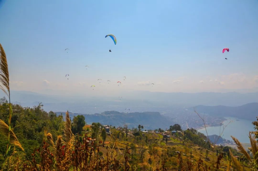 还记得几年前那个特别火的《等风来》吗,当初真的是把尼泊尔炒火了,吸引很多游客来到尼泊尔的博卡拉玩滑翔伞,我也是在来之前刚刷了遍那个电影,到最后面时画面确实很唯美,看的很心动,这不,在博卡拉前往 Nayapul 的盘山路上看到了《等风来》的取景地,这里有众多滑翔伞,在蔚蓝的天空下,就好像很多自由自在的鸟儿,诠释着幸福与向往。