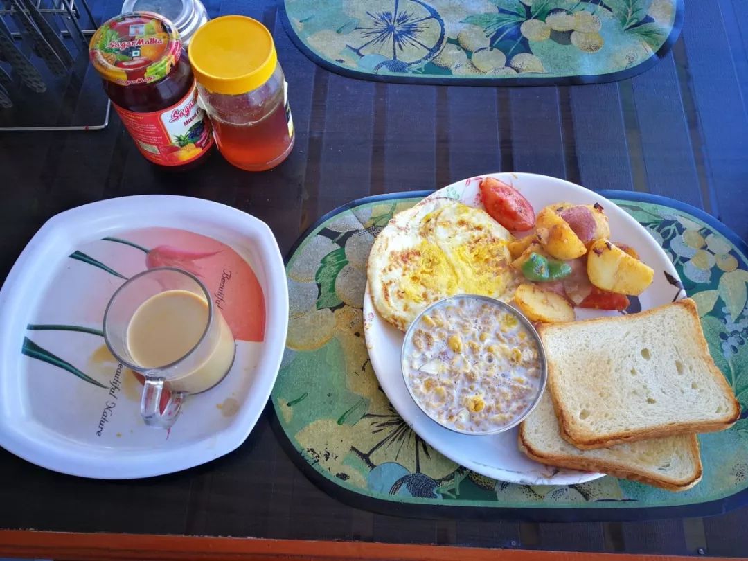 迷迷糊糊起来吃个早餐,本以为山上伙食不会太好,可当早餐端到桌子上时发现