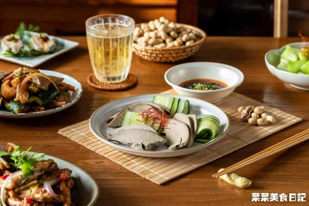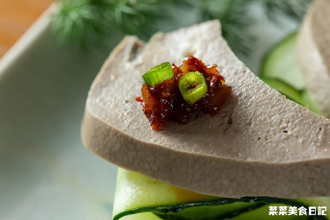 亲眼瞧着原本血红腥臊的猪肝,变成了这副白嫩香软的模样,别提多有成就感了!当下就玩起了摆盘,用盐水猪肝叠加黄瓜薄片,再点缀上蒜茸辣椒酱。还别说,这样叠叠乐的吃法,脆嫩交织,清爽惹味,倒真值得一试!辣椒面、蒜末、芝麻泼热油,再加生抽、陈醋、糖调成汁儿,大胆拌起来。香辣中带点酸的调味,能够很好地掩盖内脏气息,可以更专注地享受猪肝细腻顺滑的口感。菜妈为了让我补血气,就换着法子,做了各种猪肝菜式,让我不停地尝试。从那以后,这位平价的补铁王者,就成了我的餐桌座上宾。套用一句老话,世上本没有不好的食材,用对了方法,总会变好吃的!