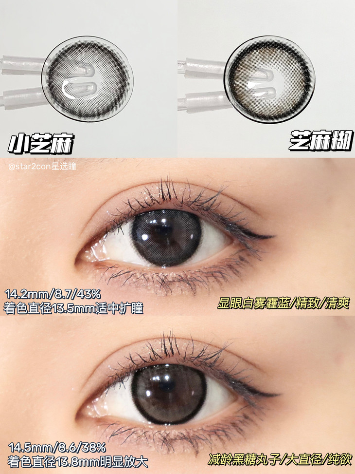 大直径的狗狗眼,美瞳中的经典款,这款眼珠太小的话可能会有留白~
