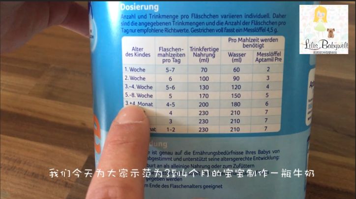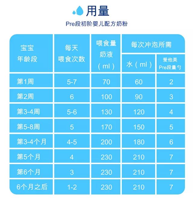 对应的月份,选择合适宝宝的奶粉用量