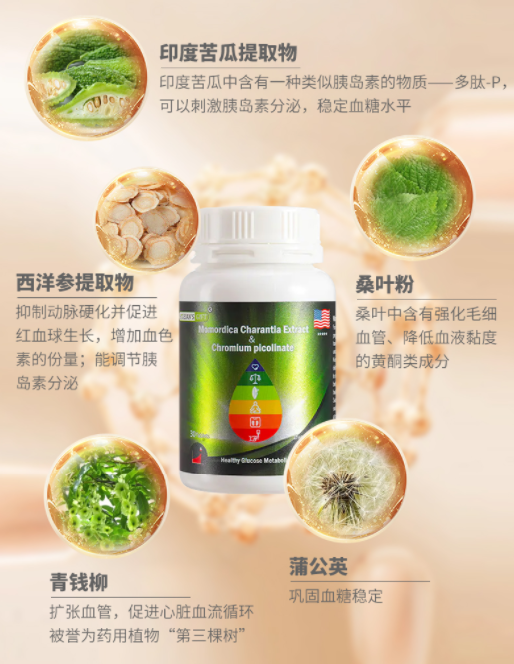 并配合苦瓜萃取物和西洋参萃取物,