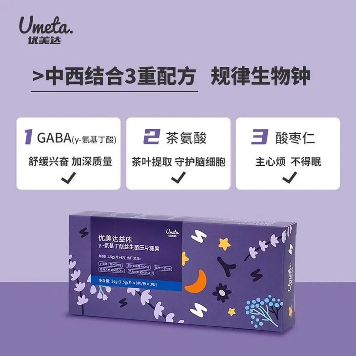 益休中的茶氨酸成分是茶叶中特有的氨基酸,能帮助大脑解除“清醒模式”和促进多巴胺释放,其在体内还会分解为γ-氨基丁酸的合成原料,与之形成协同作用,这对好搭档在一起能更好地改善睡眠和舒缓情绪。