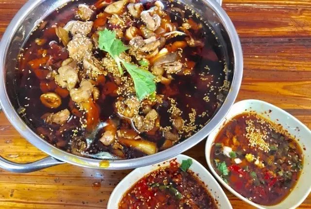 肥肠鸡可谓是成都最有特色的美食之一。店家用鸡汤煮肥肠,放入秘制酱料爆炒出来的肥肠鸡,肥肠绵软耙糯,鸡肉爽口细嫩,蘸上加入了高汤的秘制作料碟,味道一个爽字,麻辣入味,看着就有食欲。