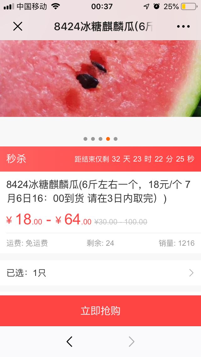 ① 对于日常百货和普通水果,设置 20~30 天的长期活动,依靠持续性的页面展示,让初次浏览时未购买的客户可以在之后下单。如:近期上线的西瓜活动,原价 30 元/1个,打折后 18 元/1个,折扣力度达到 6 折,每月订单量维持在 1200 个左右;