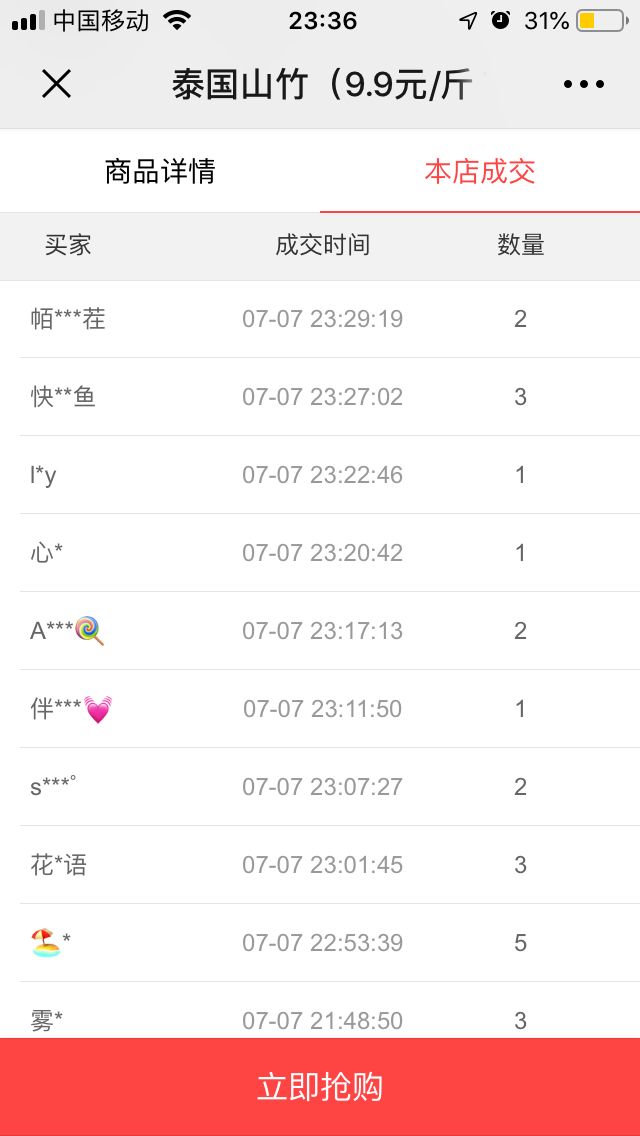 1, 线上转发+上门自提³:把流量送到线下。在同一天内发布 6 篇带有「折扣信息+店铺商品链接」内容的图文,一次性吸引大批有需求的客户购买,如:山竹秒杀活动单价 8 元/斤,4 折的优惠力度,短短 2 天新增近 2000 粉丝。其次,开启上门自提,设置取货时间为下午 4 点以后,方便客户下班后直接到店提货;