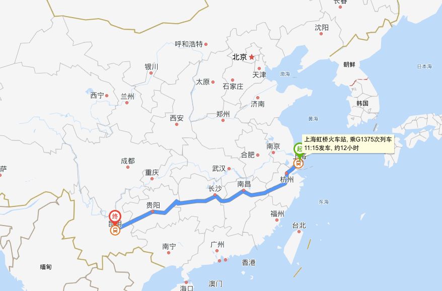 ▶线路:上海-嘉兴-海宁-杭州东-义乌-衢州-玉山-上饶-鹰潭-吉安-茶陵南-衡阳-祁东-永州-桂林北-柳州-来宾-百色-田林-兴义-威舍-罗平-师宗-昆明