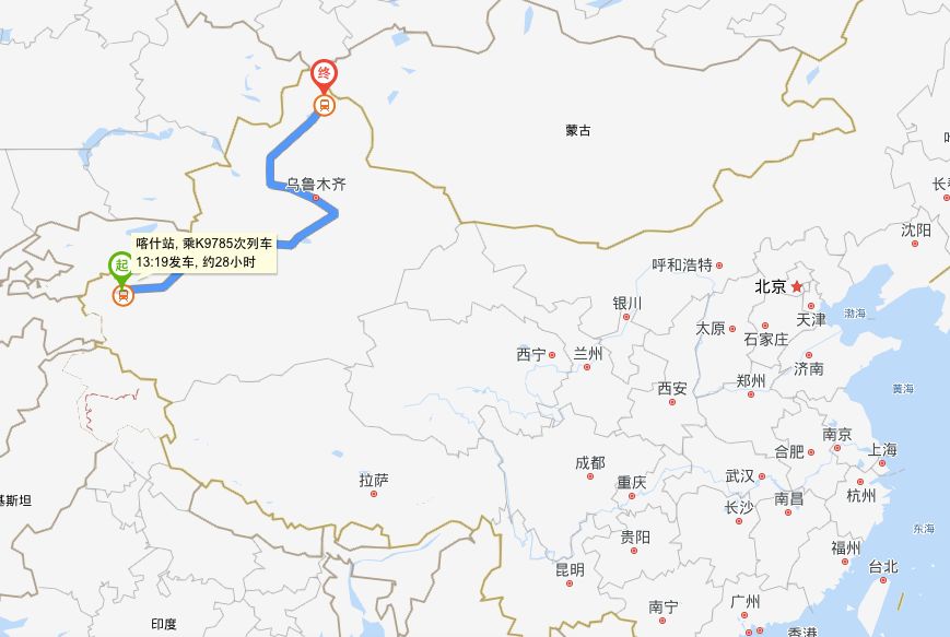 ▶线路:上海-苏州-无锡-常州-南京-蚌埠-徐州-郑州-洛阳-西安-宝鸡-天水-兰州-西宁-张掖西-嘉峪关-柳园-哈密-鄯善北-吐鲁番北-乌鲁木齐南-乌鲁木齐